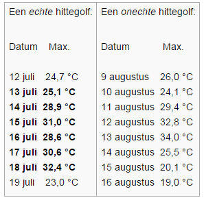 Een hittegolf is een periode met erg hoge temperaturen. meestal verschilt de definitie van het woord "hittegolf" per land. In Nederland en België is definitie dat er minimaal een temperatuur van 25 graden Celsius of hoger moet zijn voor minimaal 5 dagen, daarnaast moeten er nog 3 dagen boven de 30 graden zijn.